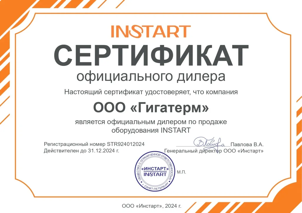 Сертификат Инстарт Гигатерм